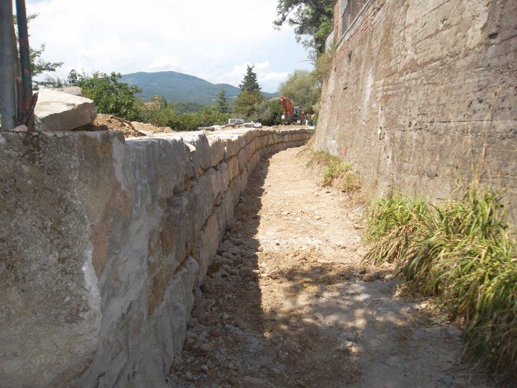 Torrente Iolo a Galceti – guado Graber: è stato demolito un muro pericolante e sono stati ricostruiti un muro in massi ciclopici di scogliera e un argine in terra. Le opere termineranno anche in questo caso entro pochi giorni.